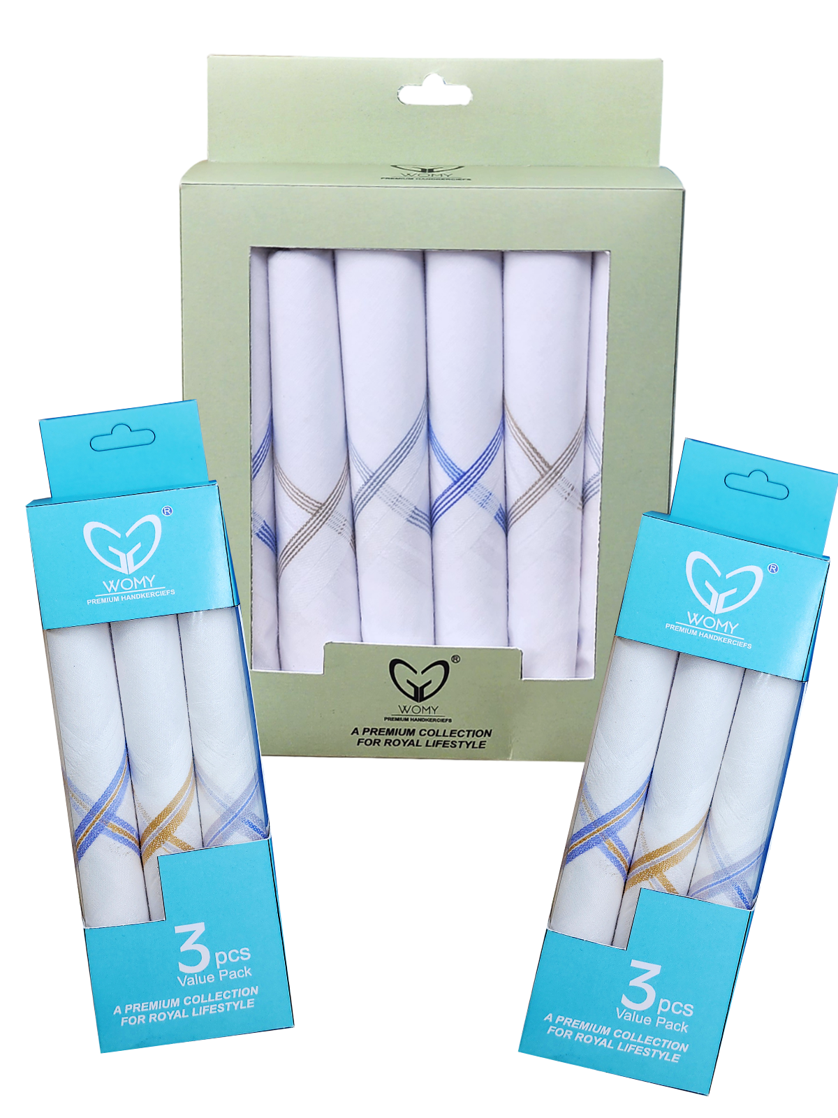 Men’s Cotton Handkerchief Set – White Border | 3500 + 4500 WB – 3PC